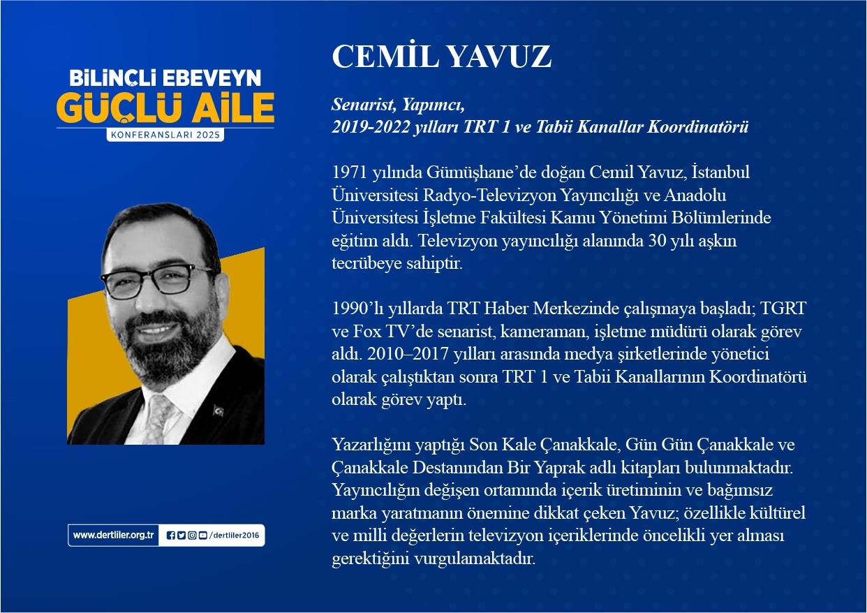 Aile Okulu’nun son haftasında; sinema ve diziler aracılığıyla değerlerin yozlaştırılması, aile kurumunu hedef alan popüler kültür saldırıları ve medya yoluyla oluşturulan algılar kapsamlı bir şekilde değerlendirilecek. Uzman isimlerin sunumlarıyla gerçekleştirilecek programda; modern medya araçlarının birey ve aile üzerindeki etkileri, çocuklar ve gençler üzerinde oluşturduğu bilinçaltı yönlendirmeler ve bu sürece karşı ailelerin nasıl daha bilinçli hareket edebileceği tüm yönleriyle ele alınacak.