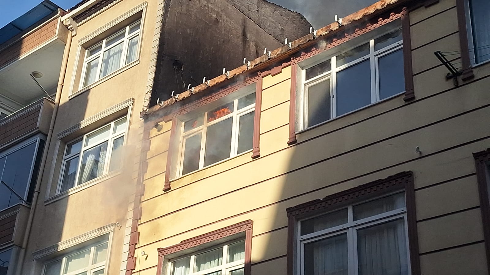 Öğle saatlerinde meydana gelen olayda, binanın çatı katından yükselen yoğun dumanı fark eden çevre sakinleri durumu hemen 112 Acil Çağrı Merkezi’ne bildirdi. İhbar üzerine bölgeye çok sayıda itfaiye, polis ve sağlık ekibi sevk edildi. Yangının rüzgârın da etkisiyle hızla yayılması, mahallede kısa süreli paniğe yol açtı.