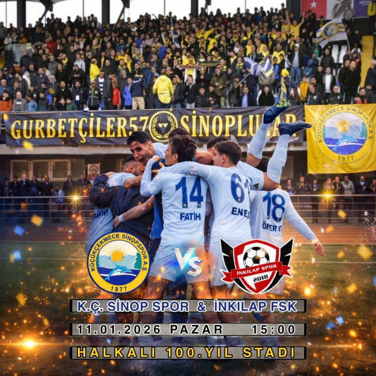 Küçükçekmece TV olarak, ilçemizi TFF 3. Lig’de başarıyla temsil eden Küçükçekmece Sinopspor’a bu önemli mücadelede başarılar diliyor; sarı-lacivertli camianın İnkılap FSK karşısında sahadan galibiyetle ayrılmasını temenni ediyoruz. Tüm gözler, 11 Ocak Pazar günü saat 15.00’te Halkalı Etap Stadı’nda oynanacak bu kritik karşılaşmada olacak. ????????