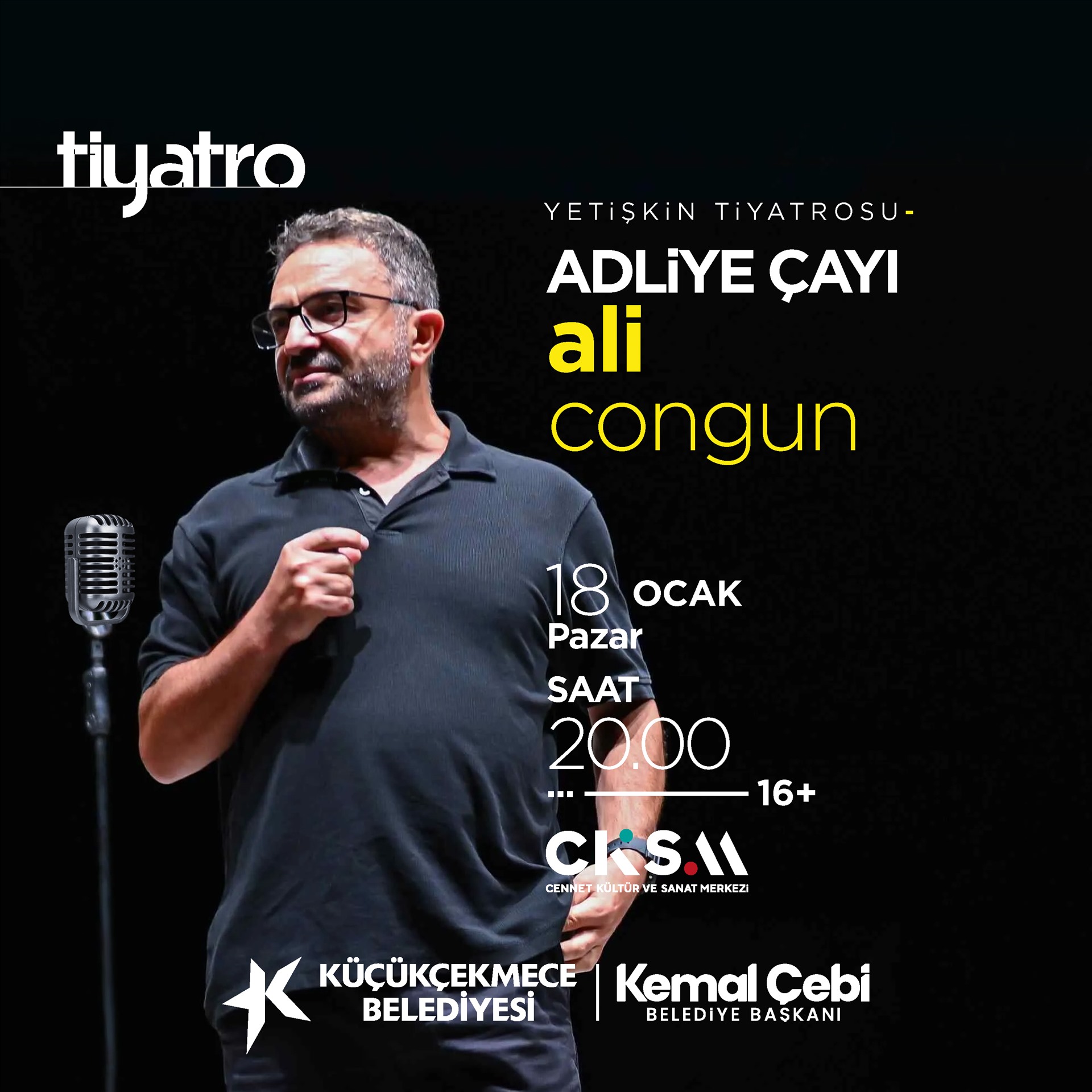 KÜÇÜKÇEKMECE – Stand-up dünyasının dikkat çeken isimlerinden Ali Congun, yeni gösterisi “Adliye Çayı” ile Küçükçekmece’de sanatseverlerle buluşmaya hazırlanıyor. Tamamı mizah amacıyla hazırlanan ve gerçek kişi ya da olaylarla birebir ilişki taşımayan gösteri, 18 Ocak’ta saat 20.00’de, Küçükçekmece Cennet Kültür ve Sanat Merkezi (CKSM) sahnesinde izleyici karşısına çıkacak.
