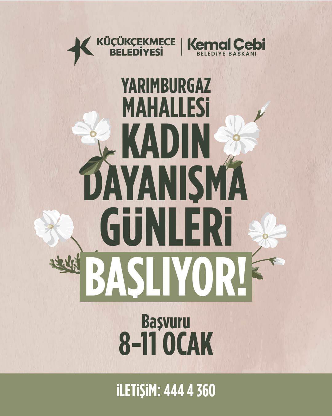 Etkinliğe katılmak isteyen kadınlar için başvuru tarihleri 8 – 11 Ocak olarak açıklandı. Katılım ve kayıt işlemleriyle ilgili detaylı bilgi almak isteyen vatandaşlar, 444 4 360 numaralı telefondan Küçükçekmece Belediyesi ile iletişime geçebilecek.