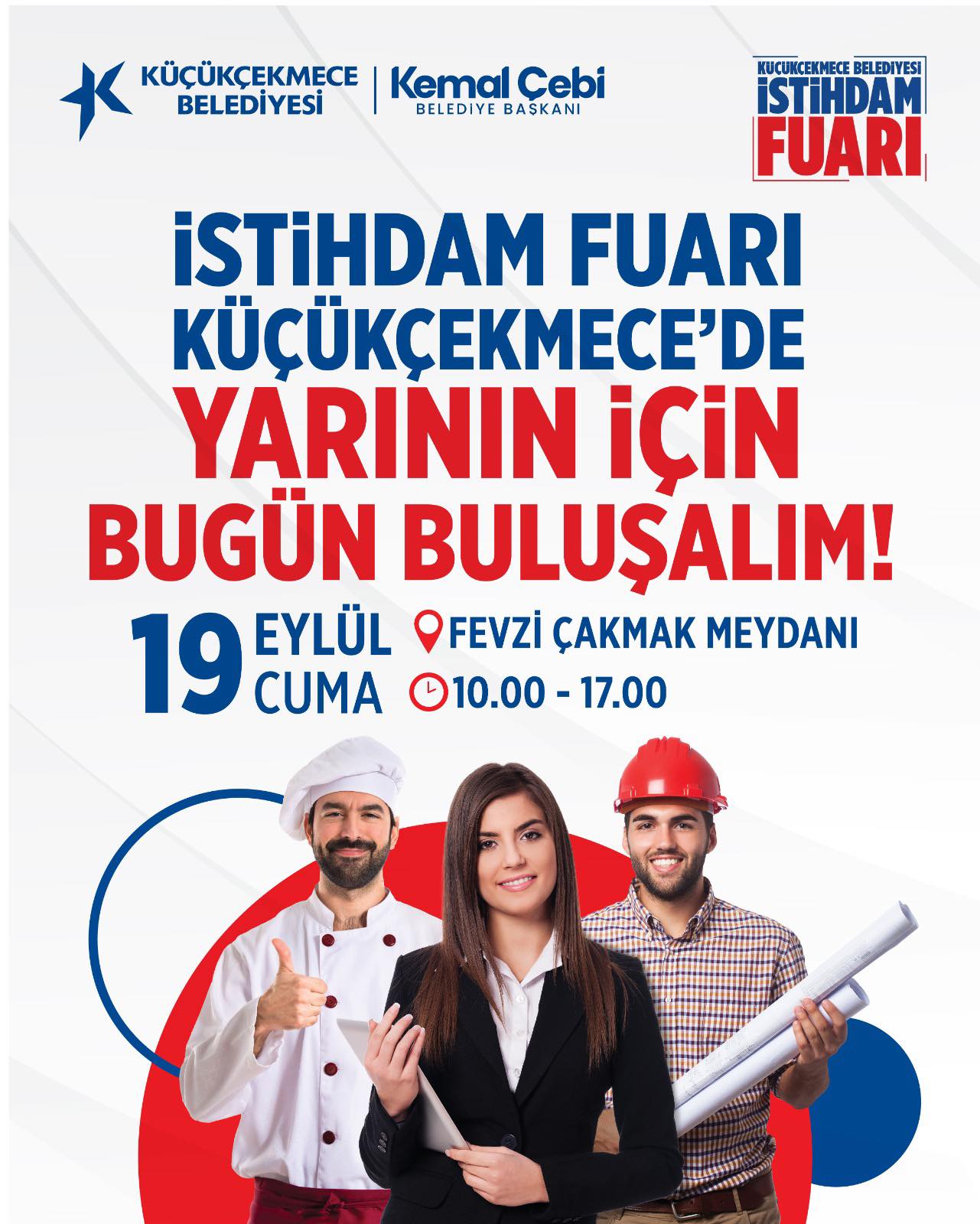 Küçükçekmece Belediyesi, iş arayan vatandaşlarla işverenleri aynı platformda buluşturacak büyük bir organizasyona ev sahipliği yapıyor. “İstihdam Fuarı”, 19 Eylül Cuma günü Fevzi Çakmak Meydanı’nda gerçekleştirilecek. Sabah saat 10.00’da başlayacak olan etkinlik, gün boyunca 17.00’ye kadar devam edecek.