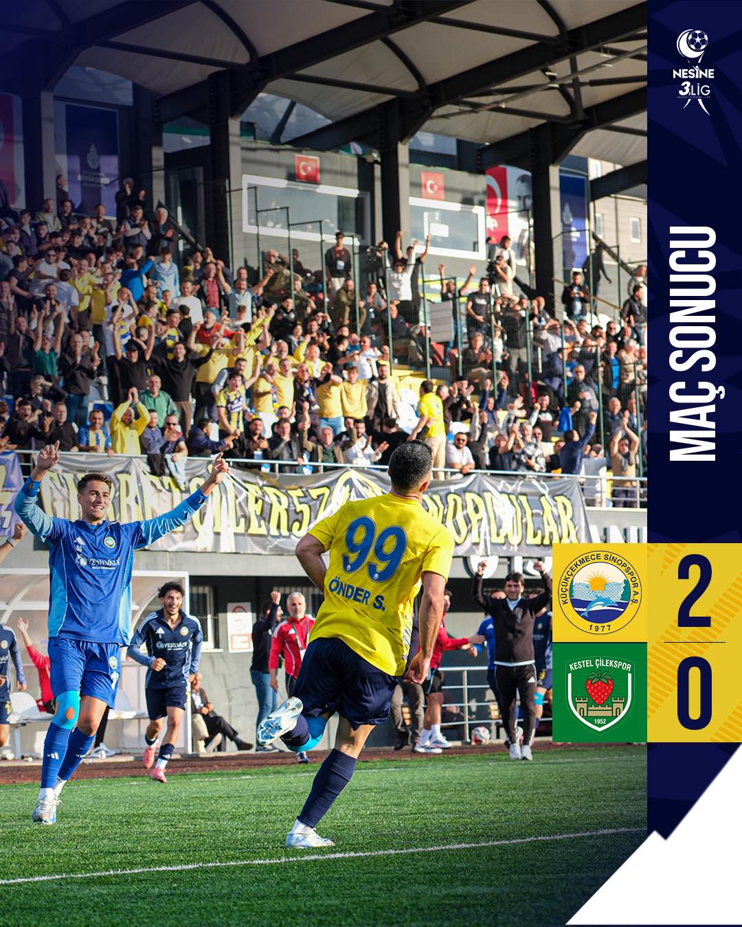 Nesine 3. Lig 2025–2026 sezonunda mücadele eden Küçükçekmece Sinopspor, ligin 9. haftasında Kestel Çilek Spor’u ağırladığı karşılaşmadan 2-0’lık net bir galibiyetle ayrılarak önemli bir 3 puanı hanesine yazdırdı. Halkalı Etap Stadı’nda taraftarlarının büyük desteğiyle sahaya çıkan mavi-sarı temsilcimiz, etkili oyunuyla tribünleri coşturdu.