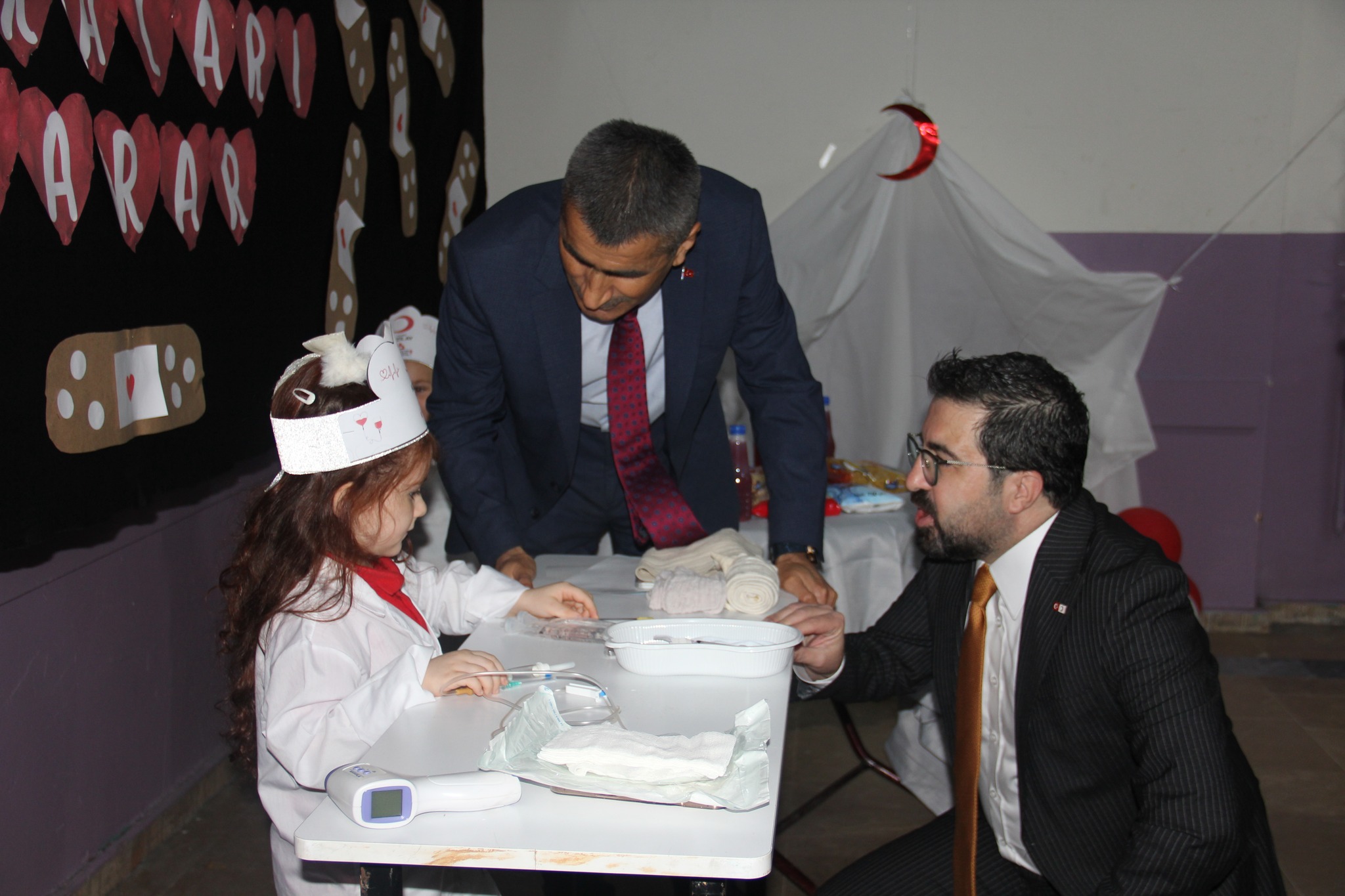 Etkinlikte ayrıca, öğrenciler tarafından “Kırmızı Hilal” adlı şiir seslendirildi; ardından okul bahçesinde Kızılay temalı resim ve afişlerin yer aldığı bir sergi düzenlendi. Böylece öğrenciler hem izledikleri konuşmalarla bilgilendi hem de resim ve afişlerle kendi görüşlerini ifade etme fırsatı buldu.