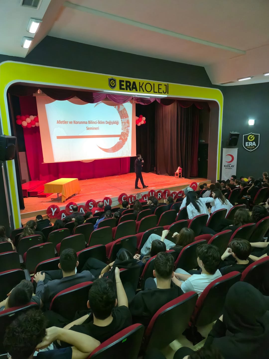 Etkinliklerin arasında, öğrencilerin Kızılay’ın insani yardım faaliyetlerine dair bilgilendirildiği sunumlar, gönüllülük bilincini geliştiren atölye çalışmaları ve Kızılay temasına uygun görsel sunumlar yer aldı. Bu sayede öğrencilere sadece bilgilendirme değil, uygulama yoluyla değer kazandırma imkânı sunuldu.