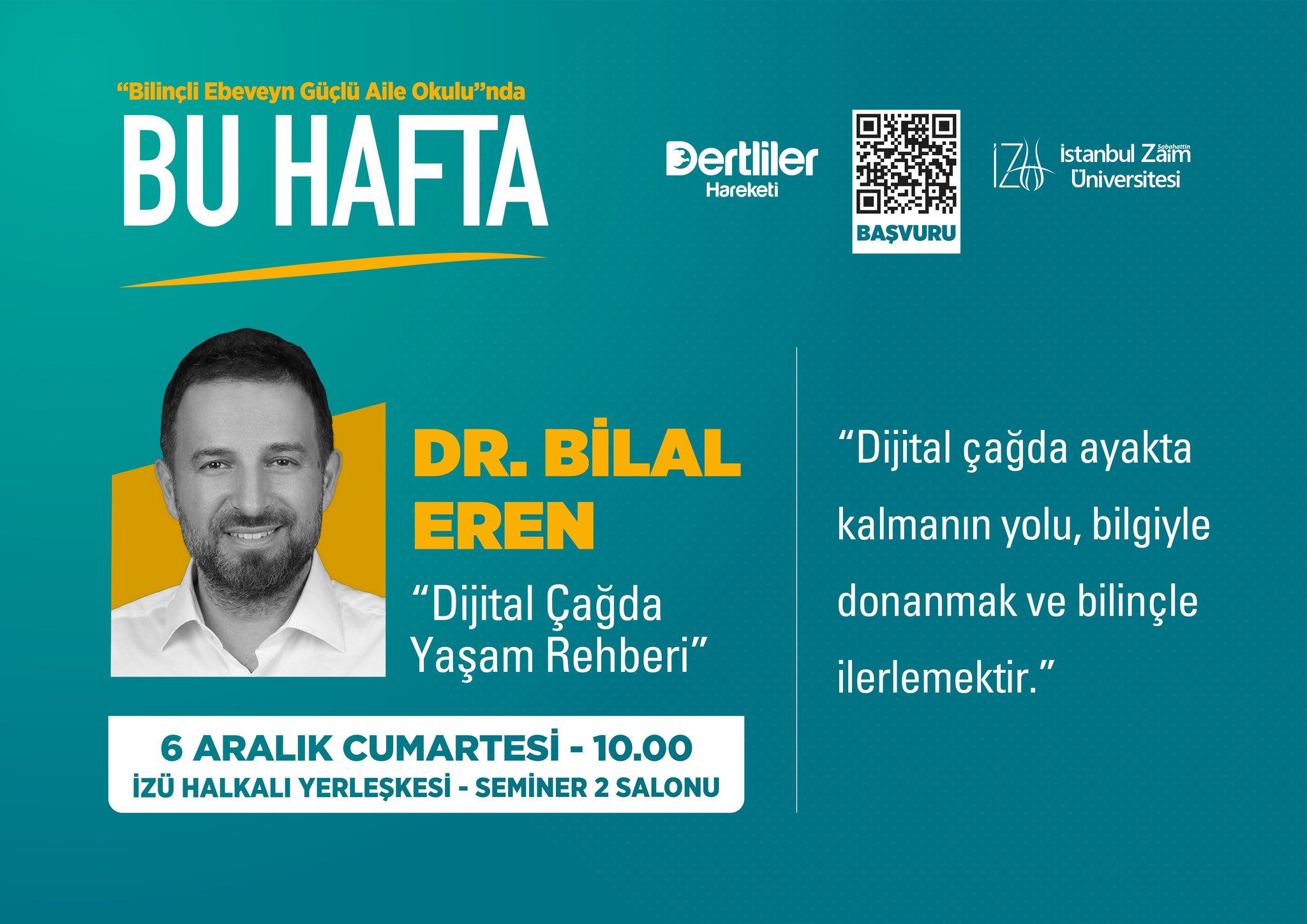 Eren, özellikle ebeveynlerin çocuklarını dijital tehlikelerden nasıl koruyabileceği, sağlıklı teknoloji kullanımı, yapay zekâ çağında aile içi iletişim ve bilinçli dijital birey yetiştirme gibi konularda önemli bilgiler paylaşacak.
