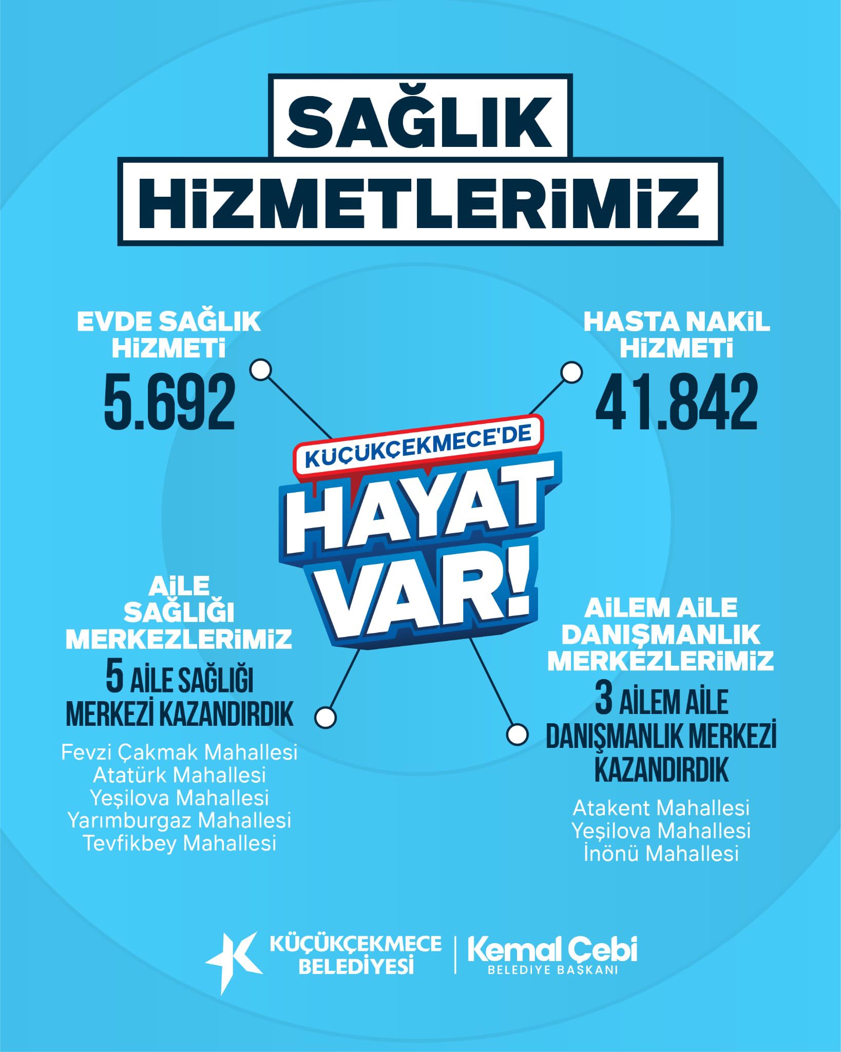 Belediyenin sunduğu sağlık hizmetleri de ilçede sağlık alanında önemli bir boşluğu dolduruyor. Evde sağlık, hasta nakil ve aile danışmanlığı gibi hizmetler sayesinde her yaştan vatandaşa destek olunuyor.