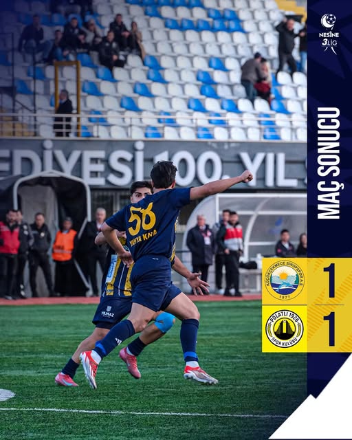 Nesine 3. Lig’de heyecan 13. hafta karşılaşmalarıyla devam ederken, Küçükçekmece Sinopspor sahasında konuk ettiği Polatlı 1926 Spor Kulübü ile 1–1 berabere kaldı. İBB 100. Yıl Stadı’nda oynanan mücadele, özellikle son dakikalarda yaşanan büyük heyecanla futbolseverlere unutulmaz anlar yaşattı.